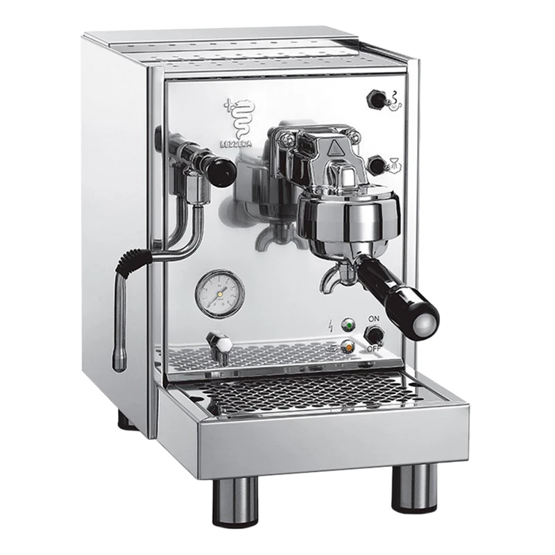 Bei der Produktion ihrer Siebträgermaschinen setzt Bezzera auf qualitativ hochwertige Materialien und eine solide Verarbeitung. Die Vibrationspumpe leistet ausreichend Brühdruck, welcher über das 16 Bar Pumpenmanometer jederzeit abgelesen werden kann. Die Technik der Siebträgermaschine wird von einem Gehäuse aus Edelstahl umschlossen, welches dem Bezzera ein stylisches Äußeres verleiht und die inneren Werte zuverlässig schützt. Mit 25 cm Breite ist das Gehäuse schmal genug, um hervorragend in der heimischen Küche integriert zu werden.