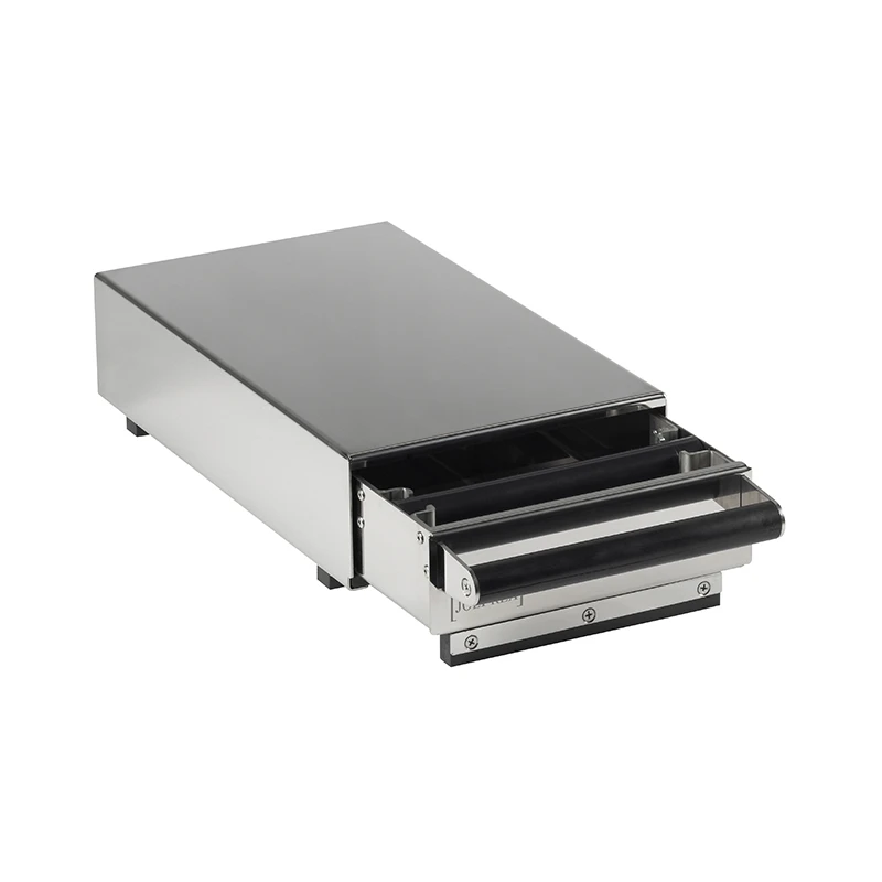Die Details zeigen, dass die JoeFrex Drawer Exclusive ST für den Profi-Barista konzipiert ist. Selbst starke Schläge machen ihr nichts aus und die Geräusche werden gut absorbiert. Der Abschlagbalken aus massivem Aluminium ist vollständig mit Silikon ummantelt, wodurch der Schlag nicht auf das Gehäuse übertragen wird.