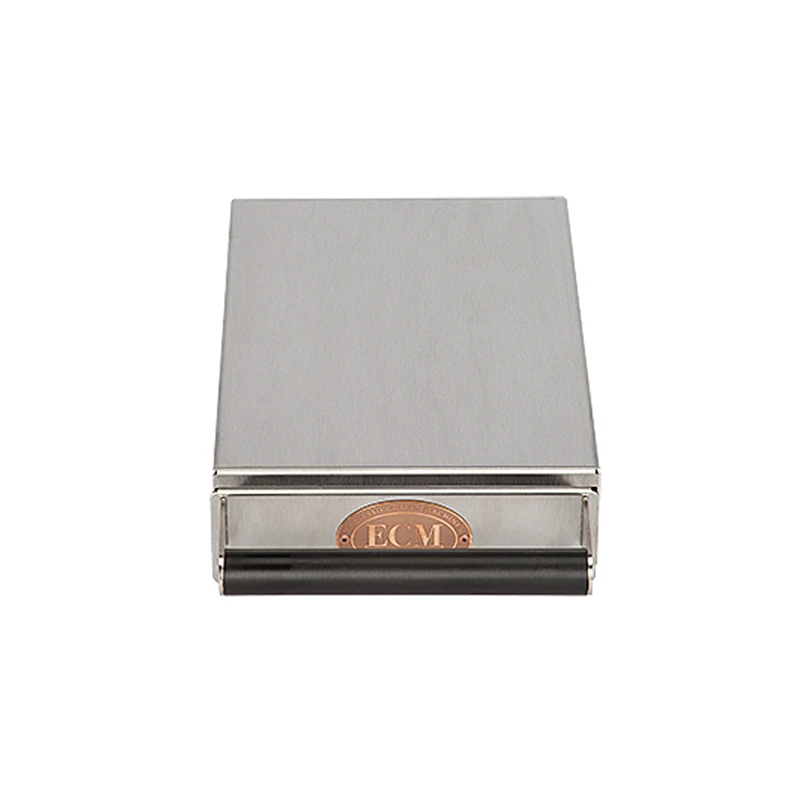 Mit der Heritage Line hat ECM eine neue Design-Kollektion geschaffen, welche aus Espressomaschine, Mühle, dieser Sudschublade und einem Milchkännchen besteht. Statt auf verchromten Hochglanz setzt die Heritage Line auf satinierten Edelstahl in Kombination mit anthrazit und kupferfarben. Auch die Sudschublade ist in satiniertem Edelstahl gehalten und hat vorne ein kupferfarbenes ECM-Emblem, sowie einen mattschwarzen Griff. So fügt sie sich nahtlos in die Optik der Heritage Line ein.
